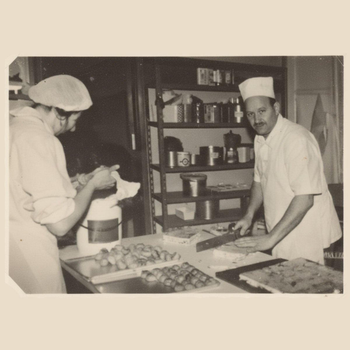 Nel 1948 nasce la nostra prima bottega, con un piccolo forno a legna e un magazzino “abusivo”, come estensione della storica Pasticceria Bologna di Via Castel Morrone, a Milano. In quegli anni difficili del dopoguerra, il profumo di pane e dolci artigianali diventa un segno di rinascita. È qui che prendono forma i primi gesti di un mestiere destinato a durare nel tempo: l’arte di impastare con passione e ingredienti semplici.
